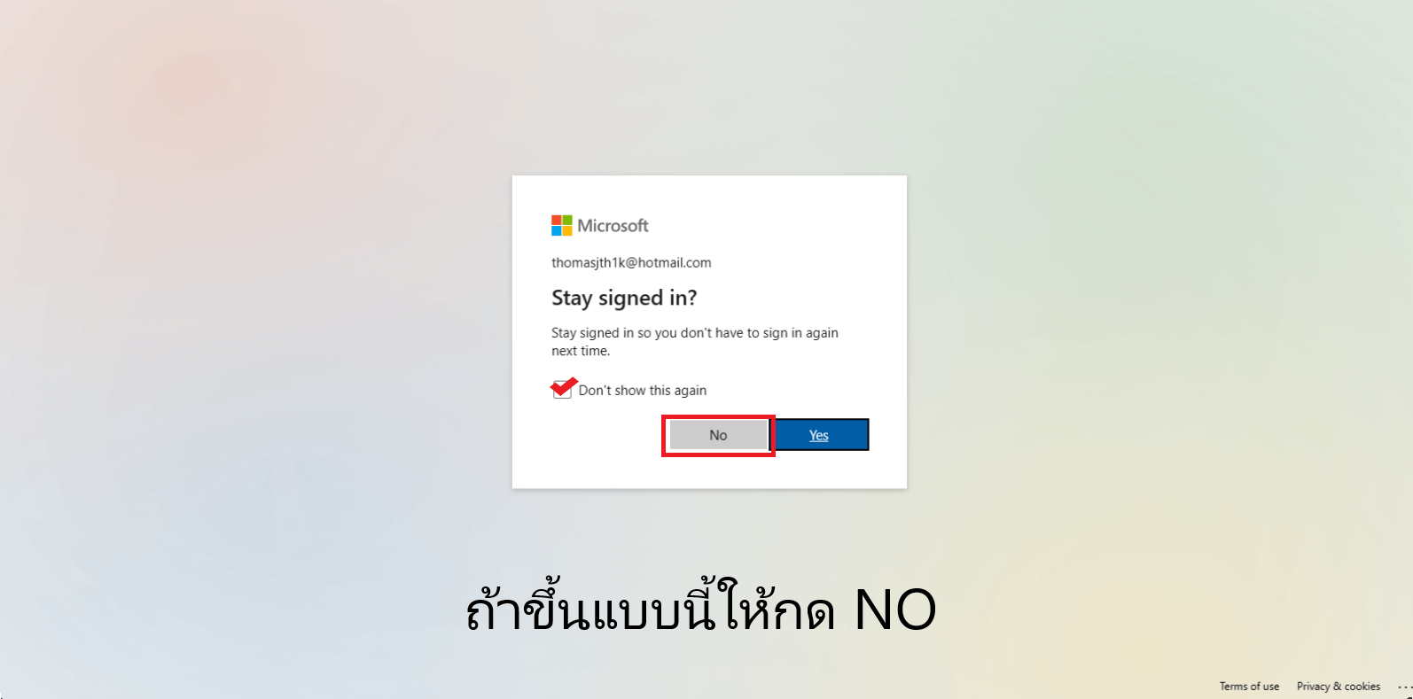 3.ถ้าขึ้นว่า Stay signed in? ให้กด NO