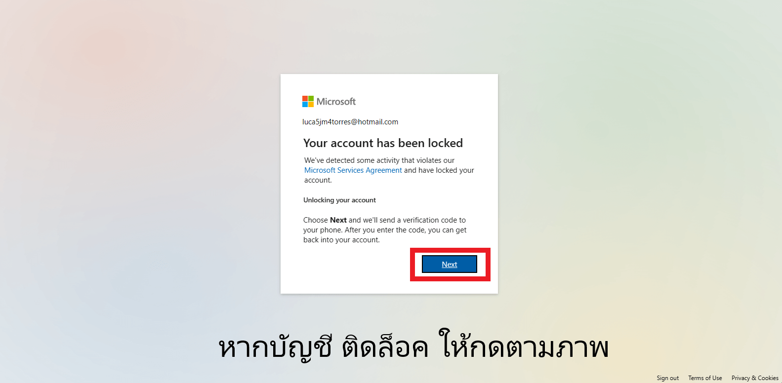 2.1 หากบัญชีติดล็อกให้กดตามภาพ
